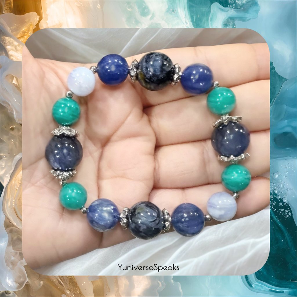 - Stones: Pietersite, Amazonite, Blue Kyanite, Blue Lace Agate